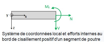 Les signes des efforts internes sont basés sur un système de coordonnées local xyz,