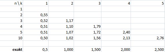 Die abgebildete Tabelle stellt die Näherungslösungen fk(n) den exakten Werten gegenüber.